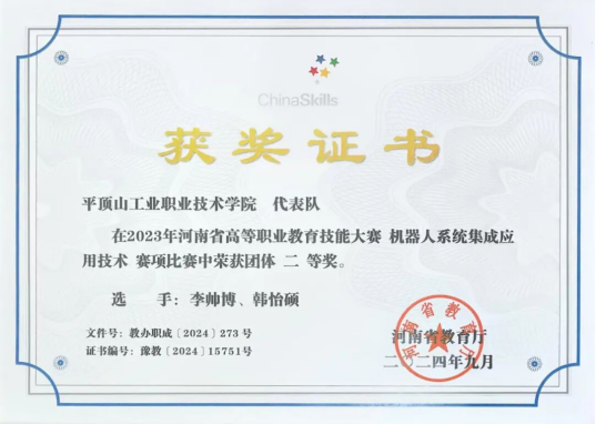 11.学生获2023年河南省高等职业教育技能大赛机器人系统集成应用技术赛项二等奖两项。指导老师:孔令雪、鲁佳。