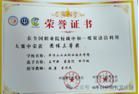 化工专业学生2019年参加中煤协会技能大赛获二等奖