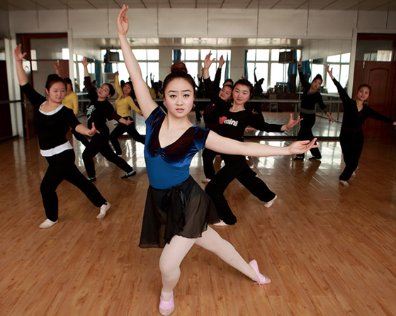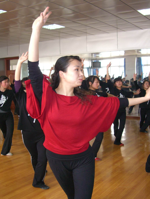 老师带领学生形体练习